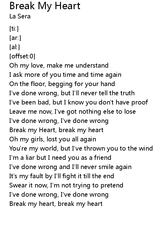 Break my Heart, break my heart |
