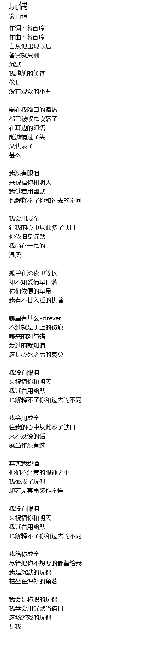 | 作词 : 翁百璋 | |