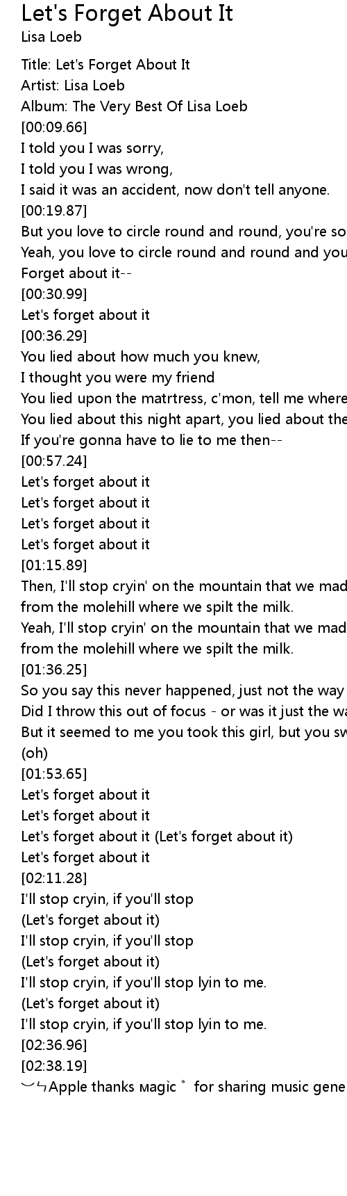 | [02:03.76] | Let' s forget about it Let' s forget about it |