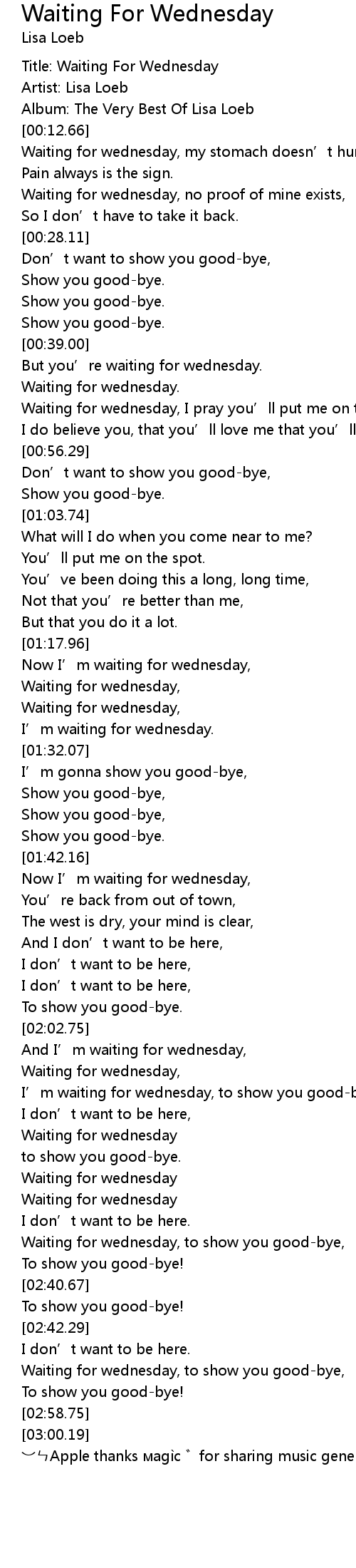 | [02:31.44] | Waiting for wednesday |