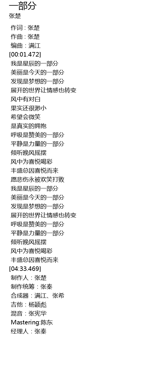 | [04:33.706] | 制作人:张楚 |