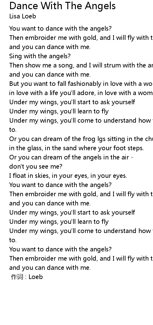 | [01:38] | Or you can dream of the angels in the air |