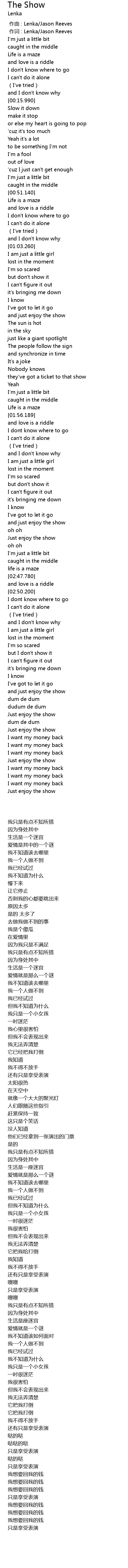 | [00:00.313] | zuò cí : Lenka Jason Reeves |