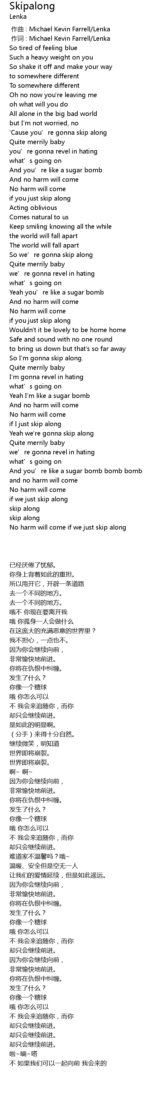 | [00:43.01] | ' Cause you' re gonna skip along |
