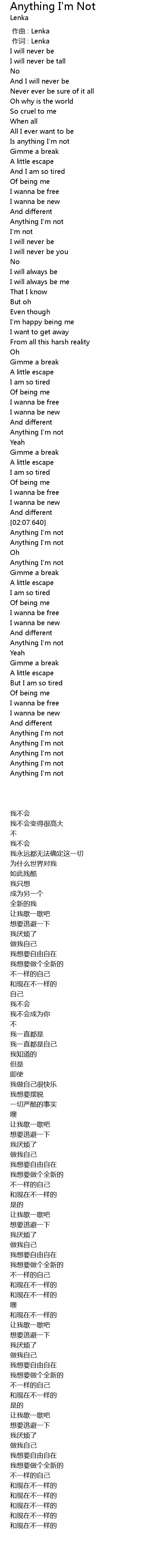 | [00:54.100] | Anything I' m not |