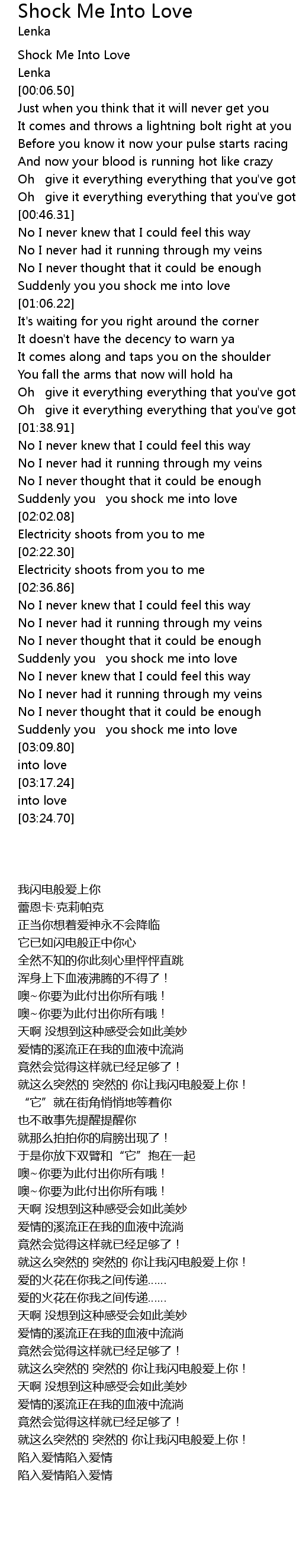 | [00:03.16] | Shock Me Into Love |