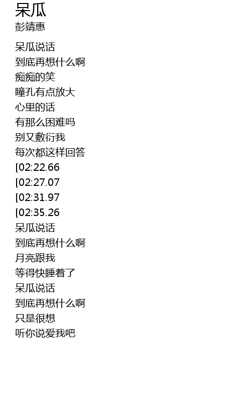 | [02:54.34][02:35.26][01:48.35][01:10.60] | zhǐ shì nǎo dài kōng kōng de |