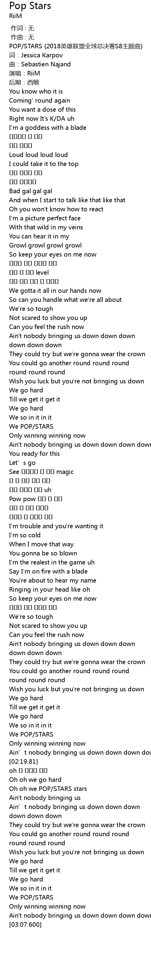 | [00:00.001] | POP/STARS (2018英雄联盟全球总决赛S8主题曲) |