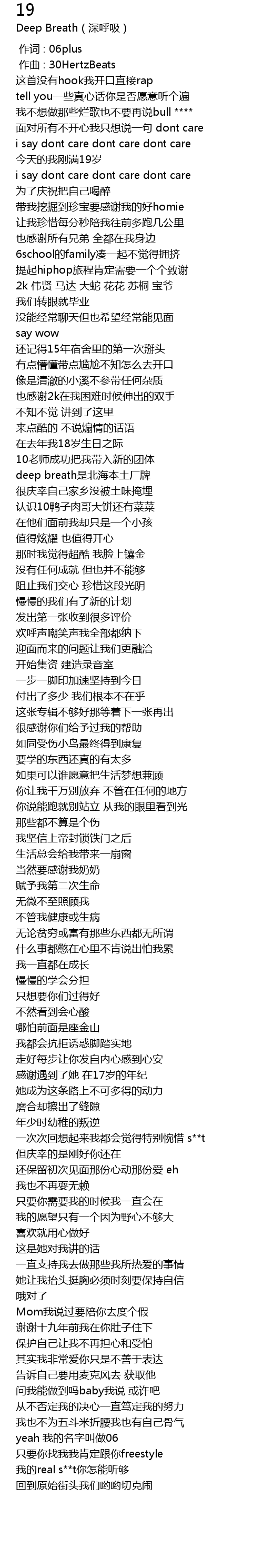 | [00:19.304] | 这首没有hook我开口直接rap |