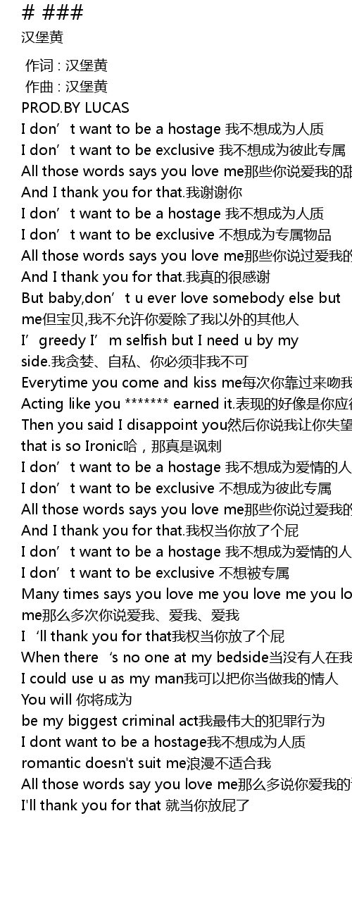 | [02:51.722] | I dont want to be a hostage我不想成为人质 |