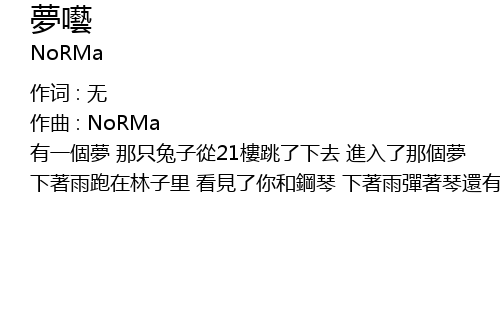 | 有一個夢 那只兔子從21樓跳了下去 進入了那個夢 下著雨跑在林子里 看見了你和鋼琴 下著雨彈著琴還有你 |