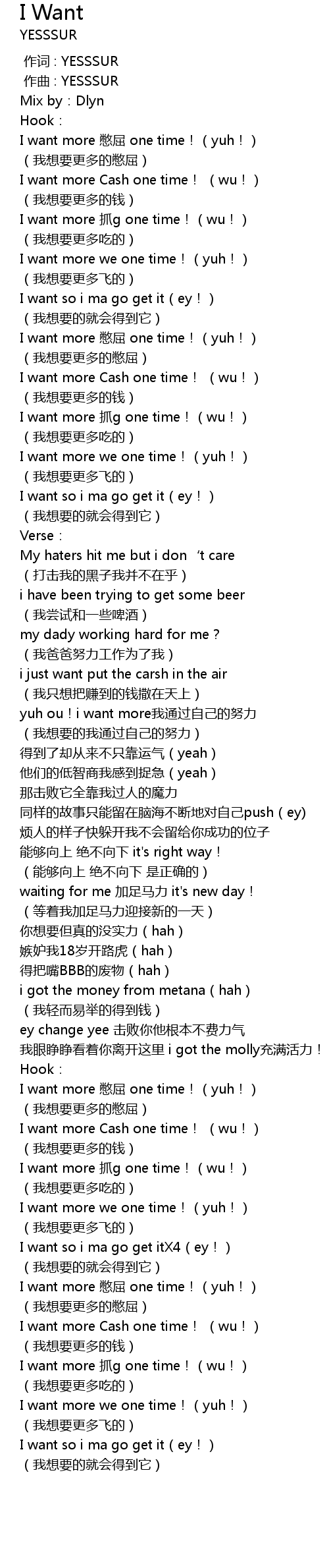 | [01:41.186] | (我想要更多的钱) |