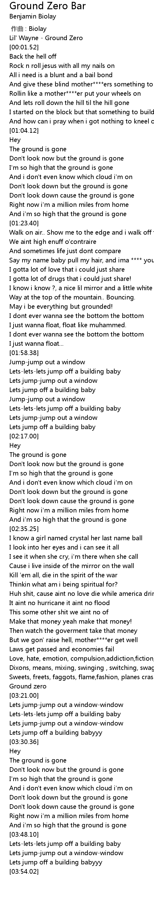 | [00:00.52] | Lil' Wayne Ground Zero |