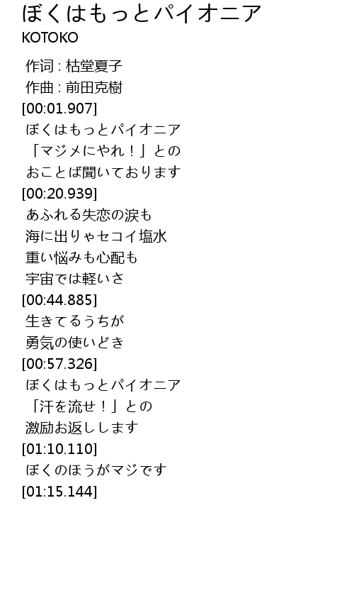 | [00:58.077] | ぼくはもっとパイオニア |