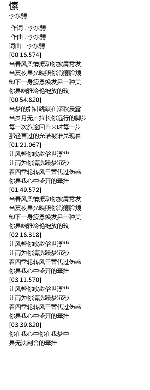 | [03:32.573] | 你是我心中盛开的牵挂 |