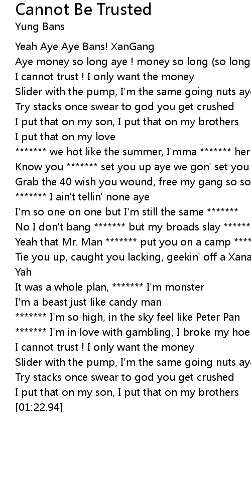 | [00:48.10] | Yeah that Mr. Man ******* put you on a camp ******* |