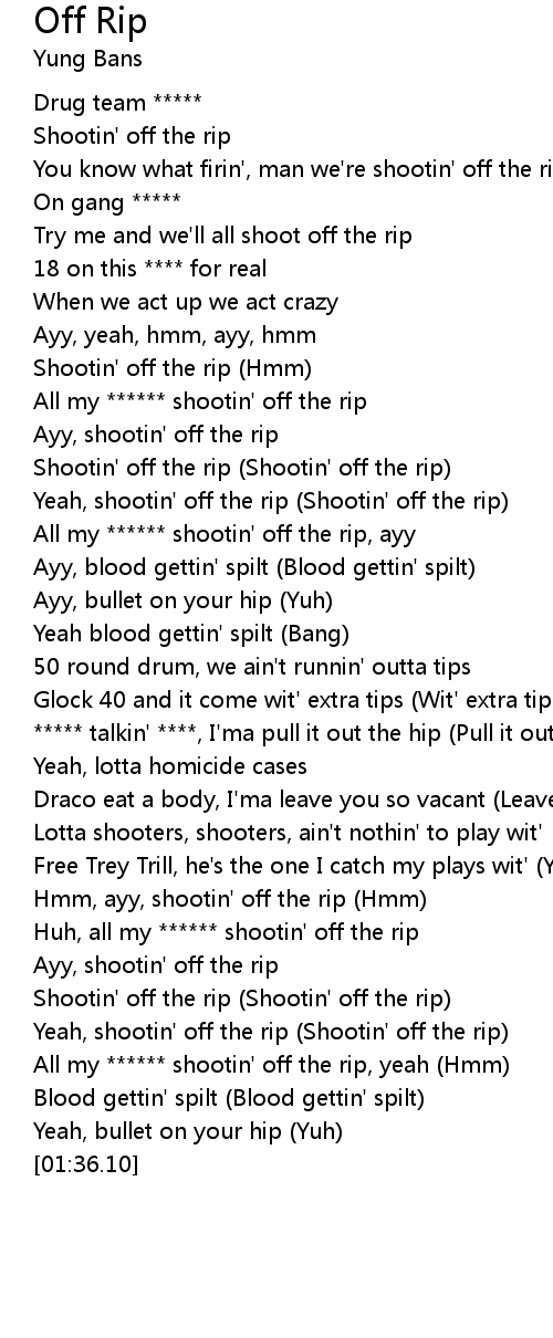 | [00:32.95] | Shootin' off the rip (Shootin' off the rip) |