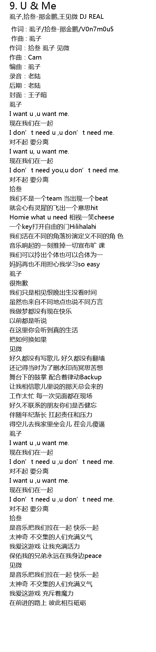 | [02:09.541] | I don' t need u , u don' t need me. |