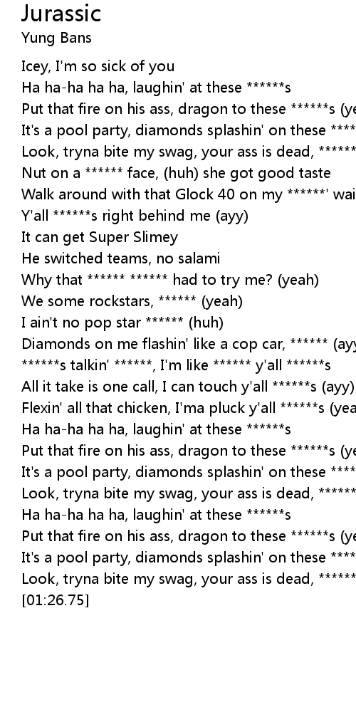 | [01:20.54] | It's a pool party, diamonds splashin' on these ******s (ayy) |