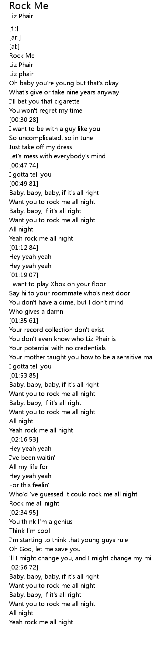 | [03:14.53] | Yeah rock me all night |