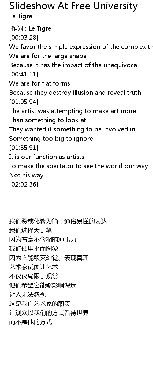 | [00:30.53] | We favor the simple expression of the complex thought |