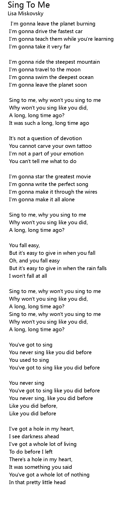 Sing to me, why you sing to me |