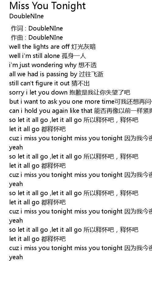 | [00:53.718] | cuz i miss you tonight miss you tonight 因为我今夜想你 |