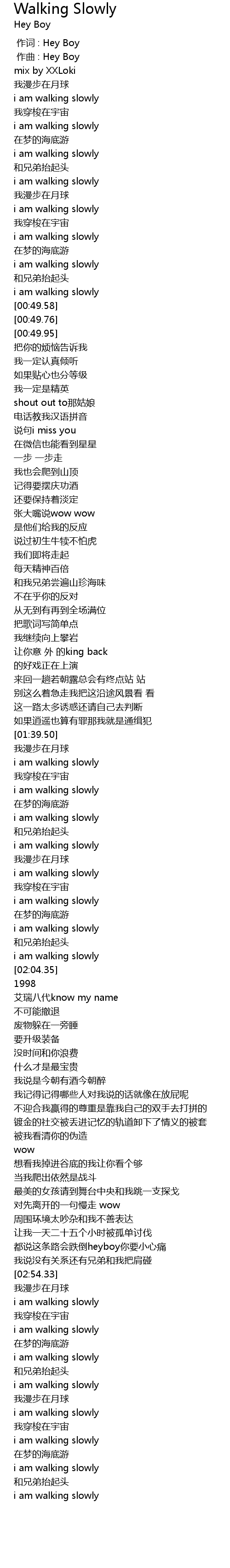 | [02:00.14] | i am walking slowly |