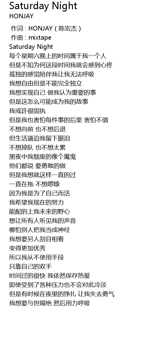 | [00:00.000] | 作词 : HONJAY(陈宏杰) |