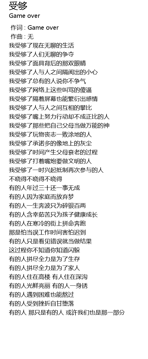 | [00:00.000] | 作词 : Game over |