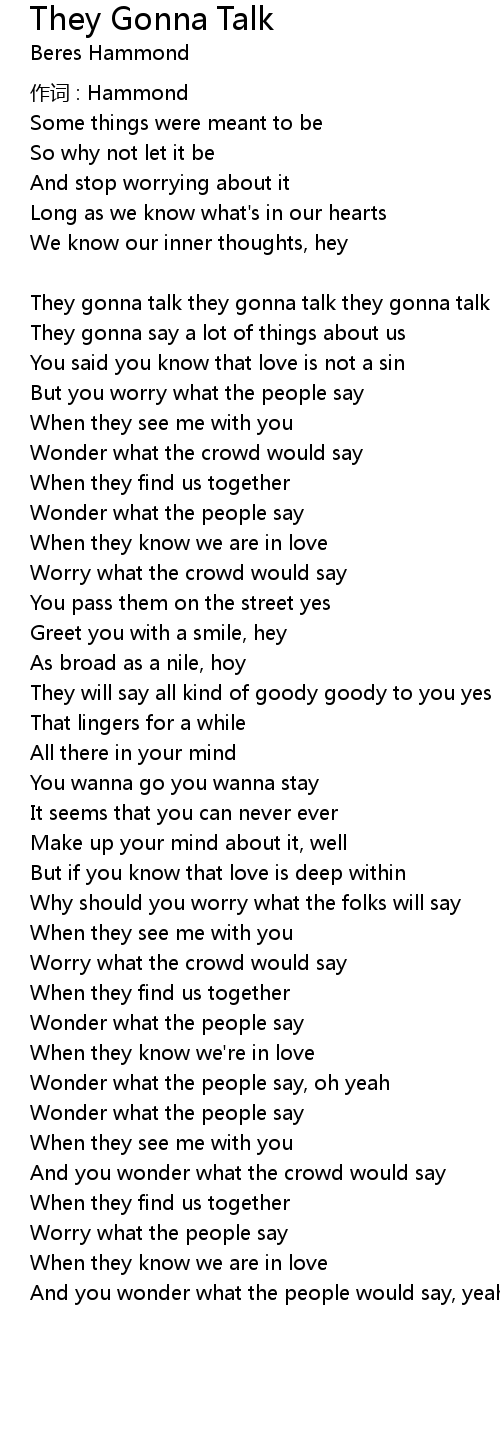 | And you wonder what the people would say, yeah yeah [Chorus] |