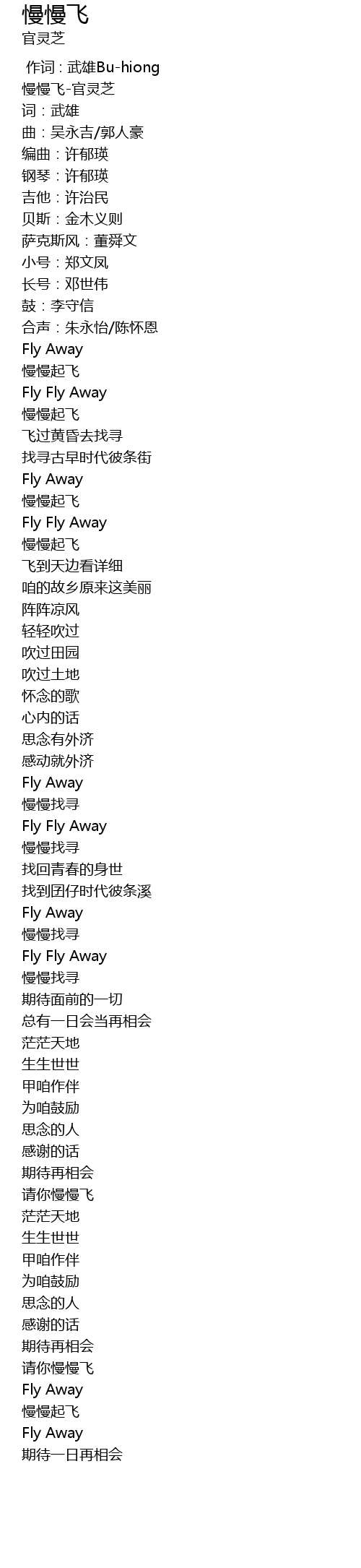 | [00:00.520] | 慢慢飞-官灵芝 |