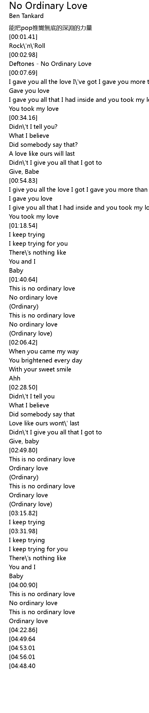 | [04:06.50] | No ordinary love |