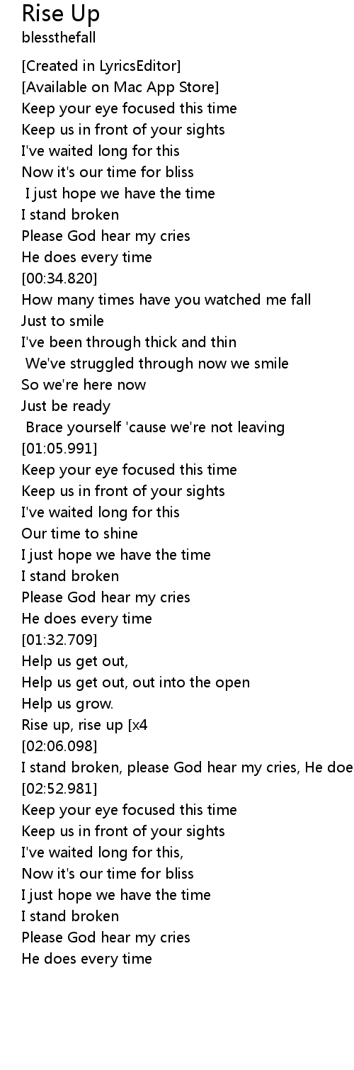 | [02:20.631]I stand broken, please God hear my cries, He does every time [x2] |