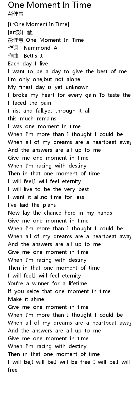 | [00:01.345] | péng jiā huì One Moment In Time |