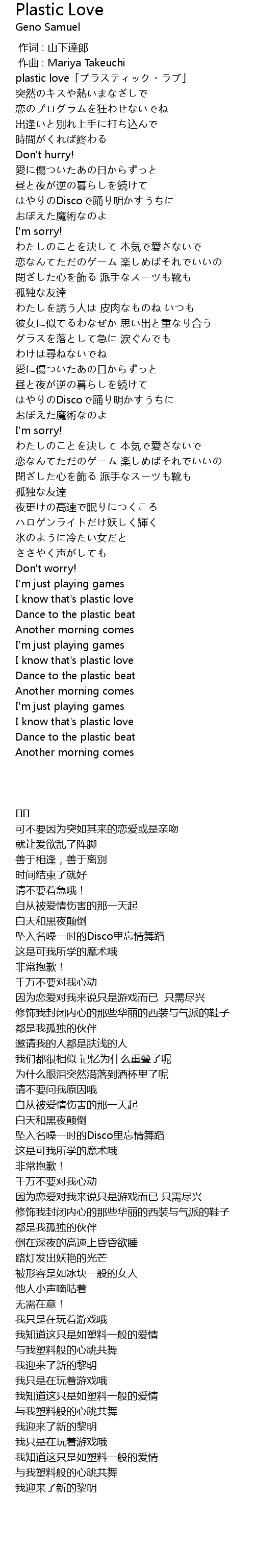 | [00:01.030] | plastic love「プラスティック・ラブ」 |