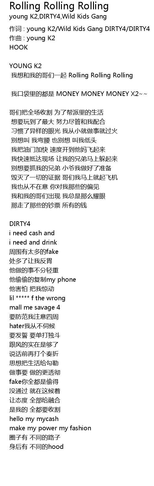 | 作词 : young K2/Wild Kids Gang DIRTY4/DIRTY4 | |