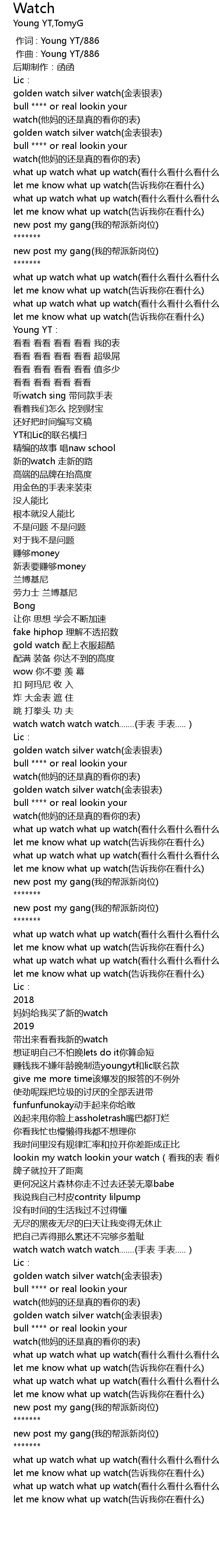 | [00:34.445] | what up watch what up watch(看什么看什么看什么看) |