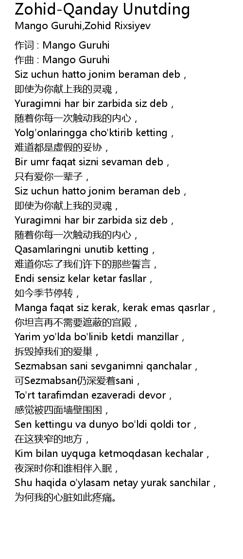 | Song | Zohid-Qanday Unutding |