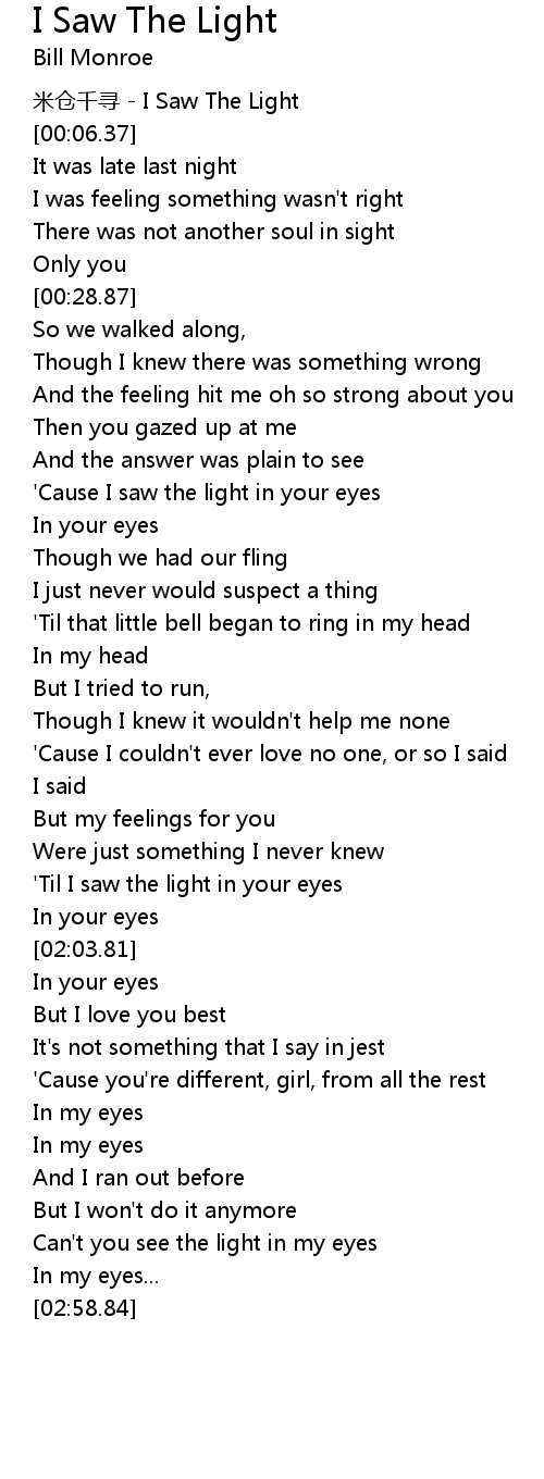 | [01:49.81] | ' Til I saw the light in your eyes |