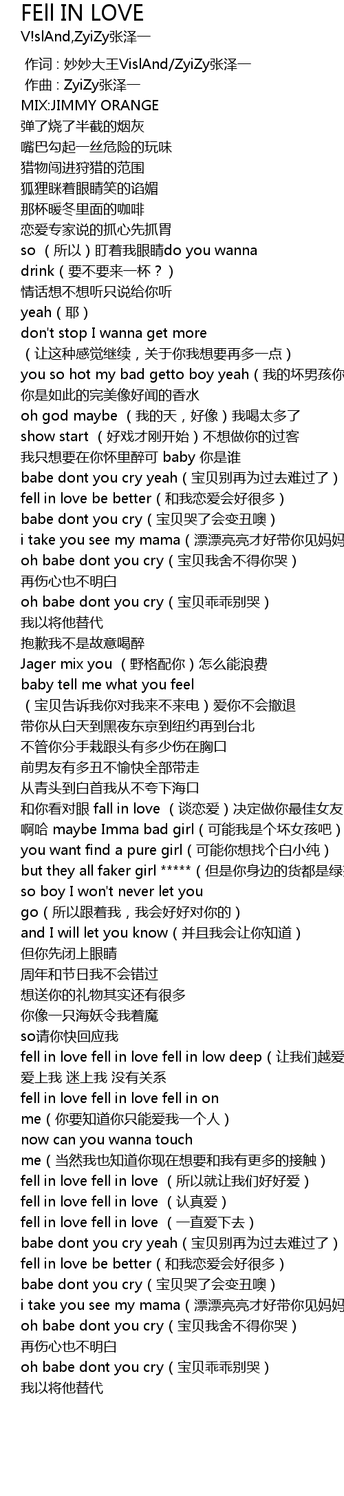 | [01:53.087] | fell in love fell in love fell in low deep rang wo men yue ai yue shen |