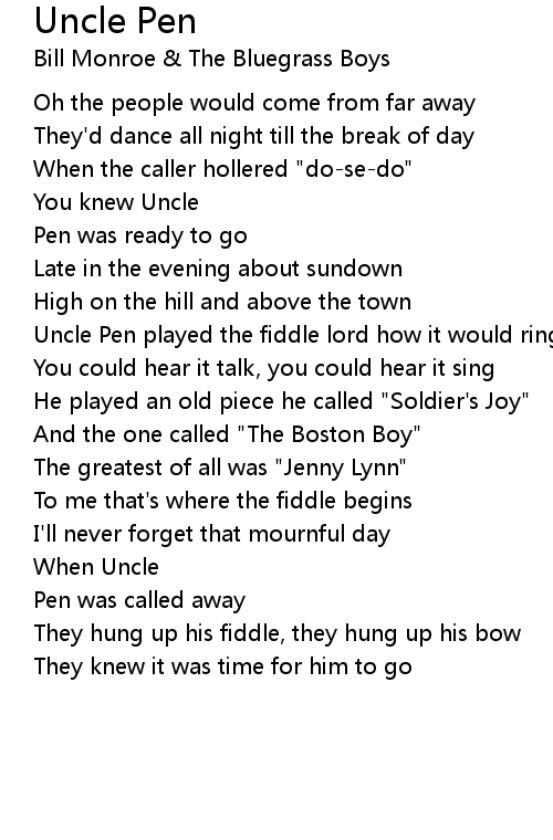 Uncle Pen played the fiddle lord how it would ring |
