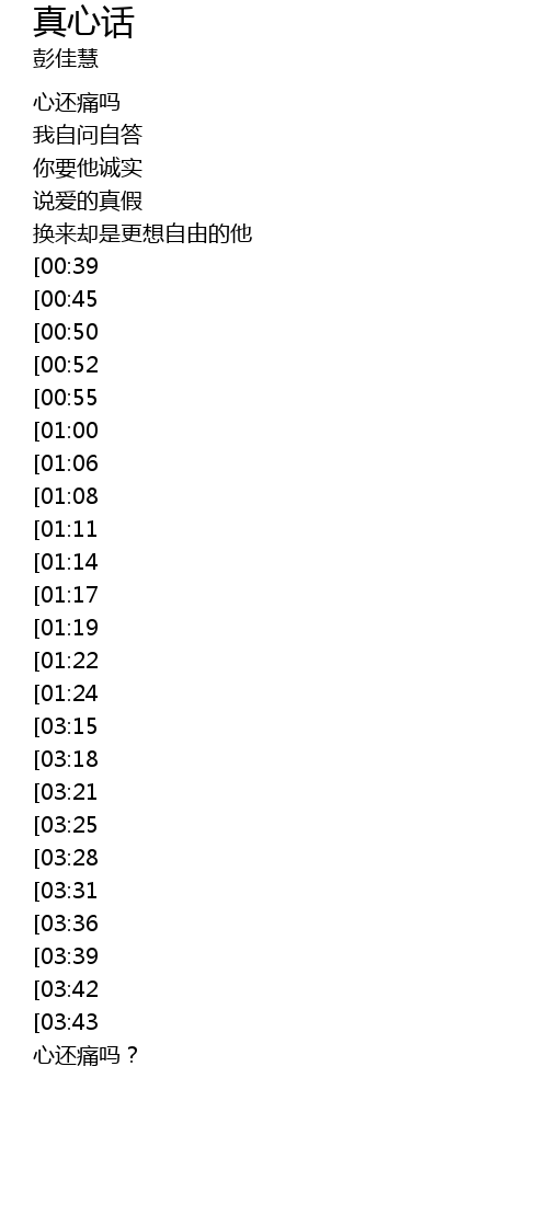 | [03:56][03:21][01:36] | zhì shǎo tā yǐ shuō chū le zhēn xīn huà |