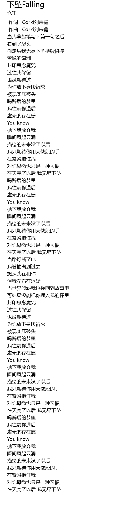 | [00:00.000] | 作词 : Corki刘宗鑫 |