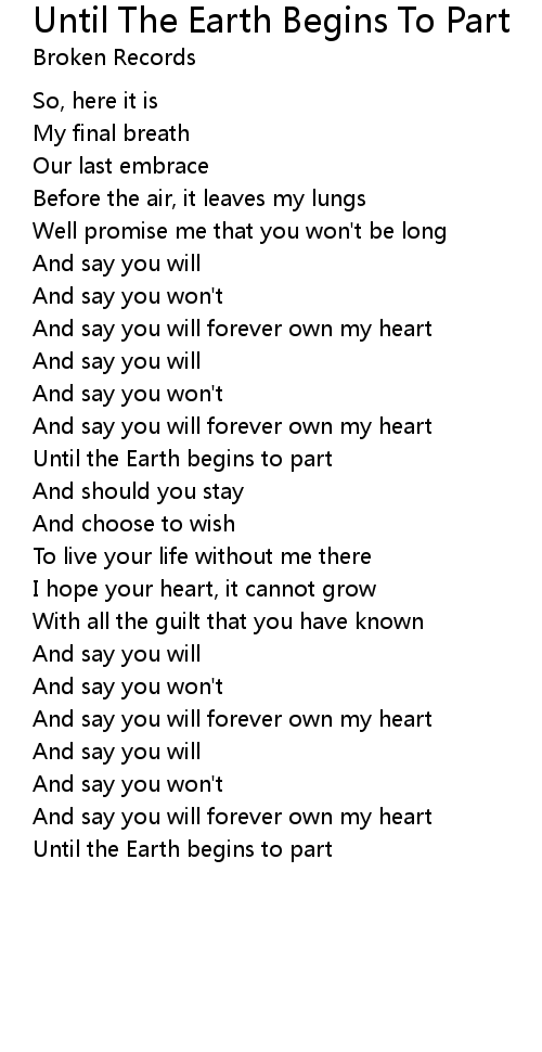 Until the Earth begins to part |