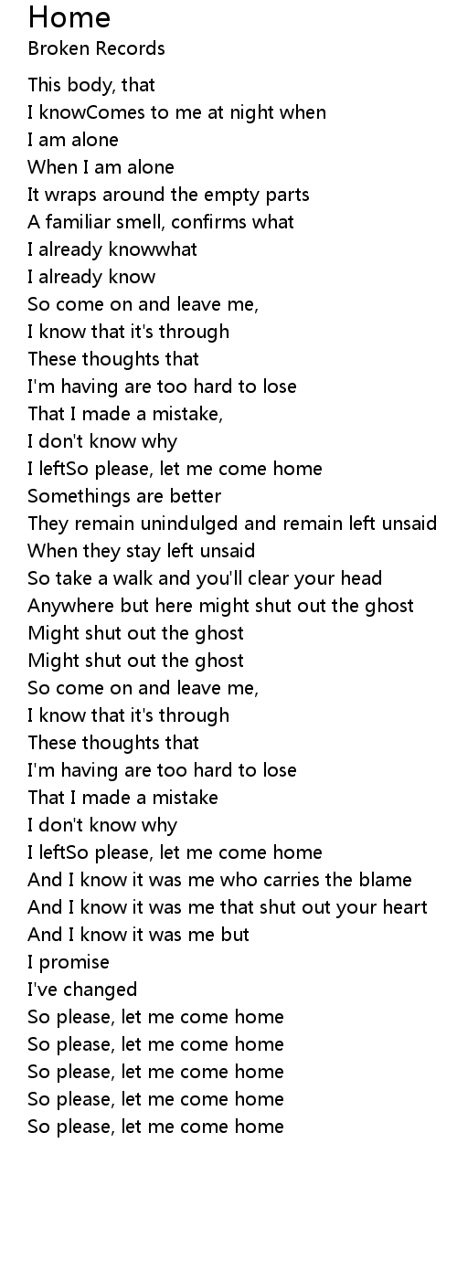 I leftSo please, let me come home |
