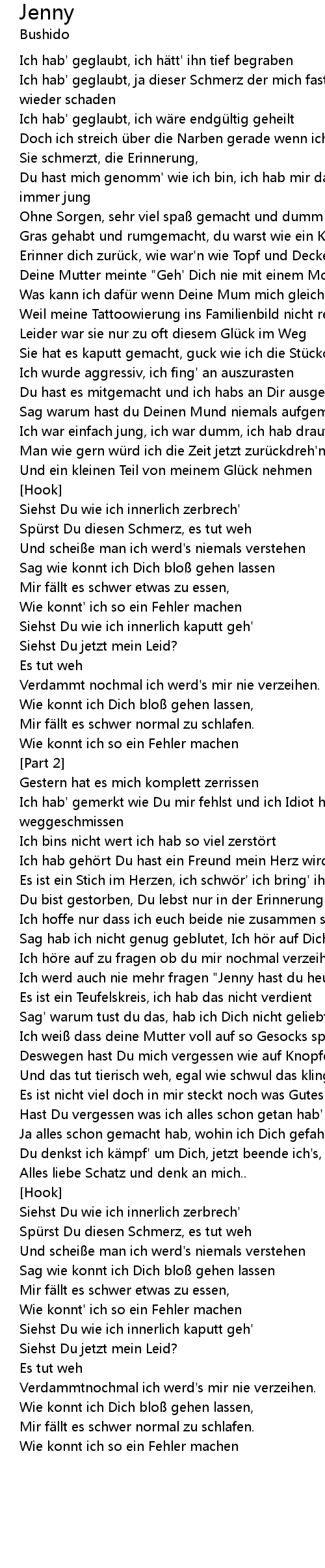 | Ich bins nicht wert ich hab so viel zerst rt | |