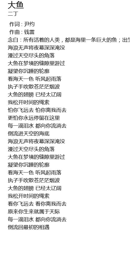 | Song | 大鱼 |