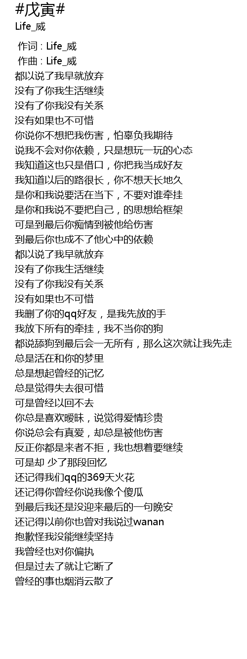 | [00:00.000] | 作词 : Life_威 |