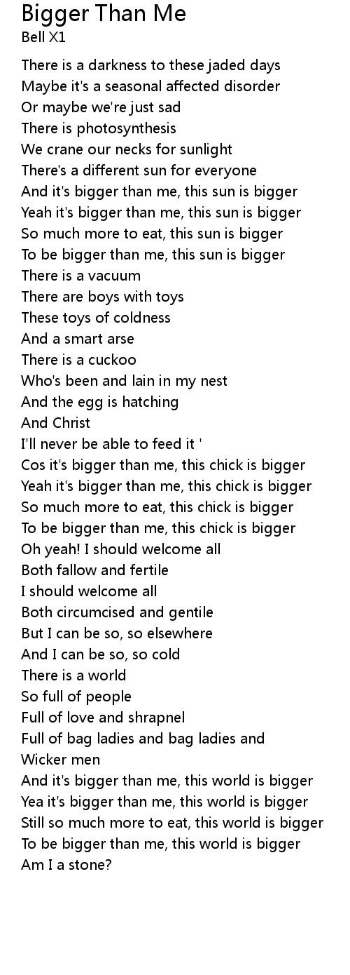 | To be bigger than me, this world is bigger | |